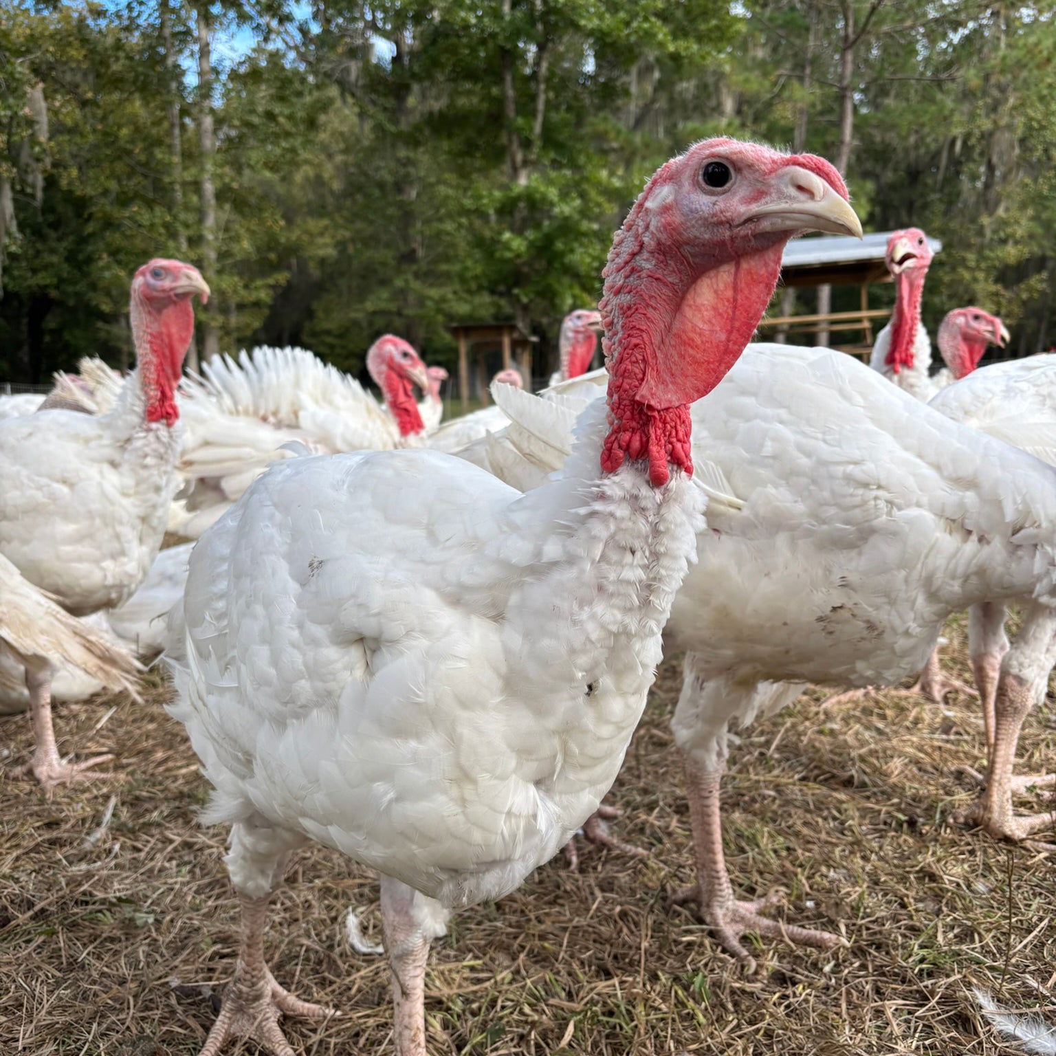 Our poultry is raised and harvested on our farm. They live a stress-free life free from antibiotics, steroids, hormones, and pesticides. Each turkey comes packed in a shrink wrap bag and labeled with safe handling instructions.